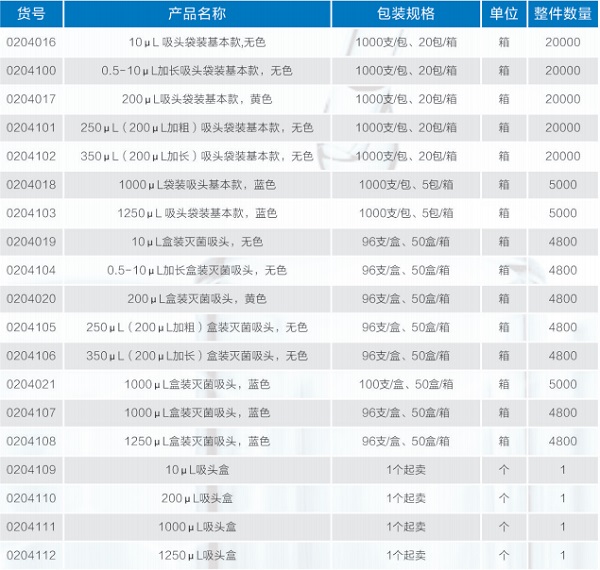 规格:规格齐全,10ul、10ul加长、200ul、200ul加粗、300ul、1000ul、1000ul加长(1250ul);袋装、盒装灭菌,滤芯,低吸附